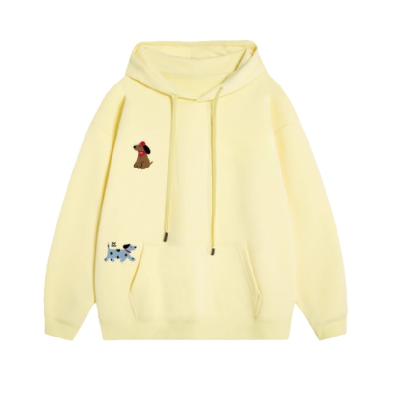 Loose-Fitting Casual Yellow Cotton Hoodie